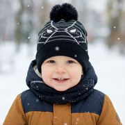Czapka i komin dla chłopca, zimowy komplet, Hafford, granatowy + czerwony, 46-48 cm