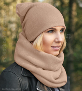 Komplet zimowy, czapka damska i komin, beżowy (5), Benita, rozm. 55-57