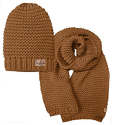 Zimowa czapka i duży komplet czapka i szal XXL Khyati, brązowy karmel, 55-57 cm
