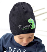 Cienka dzianinowa czapka z dinozaurem Dino Be Cool, granatowy, rozm. 44-47 cm