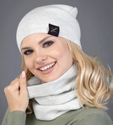 Dzianinowa czapka i komin damski, Nobia, szary perłowy, 54-57 cm