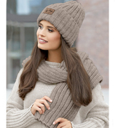 Czapka i szalik damski, komplet zimowy, Gonnesa, brąz jasny (L)
