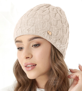 Czapka damska, zimowa, Pratta, jasny beż, 55-57