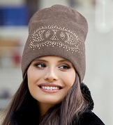 ( ilość produktów: 968 )Czapka damska zimowa, wełniana, z dżetami, Olora, beżowy ciemny, 56-58 cm