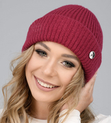 Czapka zimowa damska, wełniana, elegancka, Sabien, wrzosowy ciemny, 56-57 cm