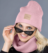 Modna czapka i komin w prążek, Veronika, różowy, 56-58 cm