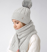 Komplet zimowy damski, czapka i szalik, wełna, Terrossa, jasny szary, 54-56 cm