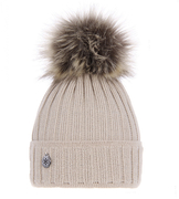 Czapka zimowa damska z pomponem, Lamina, beżowa, srebrna nitka, rozm. 55-59 cm