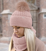 Czapka z pomponem i komin damski zimowy, Mauricia, róż nude (31), 55-57 cm
