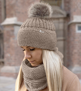Czapka z pomponem i komin damski zimowy, Mauricia, beżowy (13), 55-57 cm
