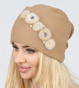 Czapka damska, zimowa, Inveja, beżowa ciemna, 55-57cm