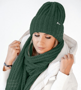 Czapka i szalik damski, modny komplet zimowy, Limda, zielona, 56-59 cm
