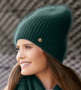 Ekskluzywna czapka damska, angora, Softina, zielony butelkowy , 54-56 cm
