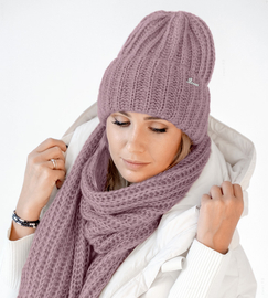 ( ilość produktów: 1230 )Czapka i szalik damski, podwijana i długi szal, wełna, Limda, wrzosowy (2), 56-59 cm