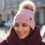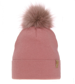 Czapka zimowa damska, Lakia, z pomponem, róż pudrowy, 55-60 cm