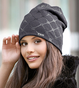 Elegancka czapka damska jesienna / wiosenna, bawełniana, Runia, grafitowa, 55-56 cm