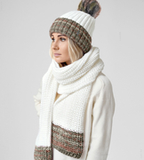 Komplet czapka i szalik, merino 100%, Porshia, kremowy, 56-58 cm