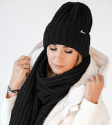Czapka i szalik zimowy, damski komplet Livja, czarny, 56-58 cm