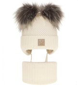 Komplet zimowy, czapka i komin dla dziewczynki, kremowy, Nimsi, 44-46 cm