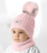 Czapka i komin dla dziewczynki, zimowy komplet, Bitti, różowy (2), 44-48 cm