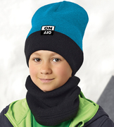 Młodzieżowa czapka i komin na zimę Bergno, czarny + turkus, 55-58 cm