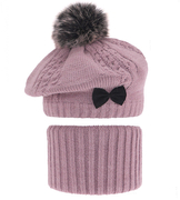 Komplet zimowy dla dziewczynki, beret i komin, Barisa, brudny róż, 48-52 cm