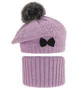Beret zimowy i komin dla dziewczynki, Omara, fioletowy, 52-54 cm