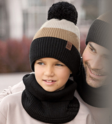 ( ilość produktów: 1248 )Czapka zimowa z kominem dla chłopca, Gutwin, czarny + beż, 53-56 cm