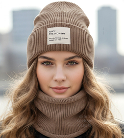 ( ilość produktów: 2619 )Komplet czapka i komin, damski zimowy wełniany, merino 100%, Gabrid, kakaowy, 56-60 cm