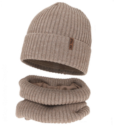 Czapka i komin dla chłopca, z wełną merino, Locton, beżowy (04), 50-52 cm