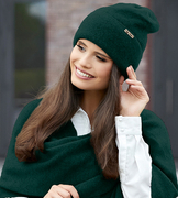 Komplet damski wełniany, czapka i szal, Berbra, zielony butelkowy, rozm. 54-56