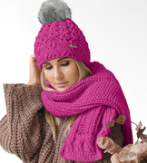 Czapka i szalik damski, komplet zimowy, Petrosa, rózowy, 55-58 cm