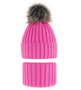 Komplet zimowy, czapka i komin damski, alpaka, Florina, różowy, 54-57 cm