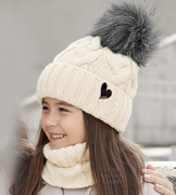 Czapka i komin dla dziewczynki, komplet zimowy, Vitona, kremowy, 54-56 cm