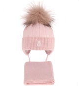 Zimowa czapka i komin dla dziewczynki, Wilma, róż blady, 46-48 cm