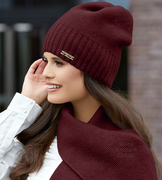 Ekskluzywna czapka zimowa damska, wełniana, Viveka, bordowy ciemny, 54-56 cm