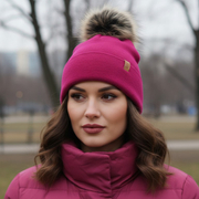 Czapka zimowa damska, Lakia, z pomponem, ciemny różowy, 55-60 cm