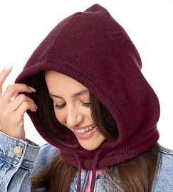 ( ilość produktów: 2623 )Komin z kapturem damski, kominiarka/kaptur zimowy wełniany, Ruanna, bordowy, 55-60 cm