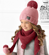 Czapka i chustka dla dziewczynki, zimowa, z pomponem, Fanny, rozm. 52-55 cm