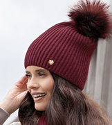 Elegancka czapka damska zimowa, wełniana z pomponem z jenota, Jenova, czarna, 55-59 cm