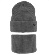 Komplet zimowy dla chłopca: czapka i komin, Moreo, szary ciemny, 51-54 cm