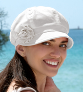 Kaszkiet damski na lato, lniany, Mia, biały, 55-57 cm