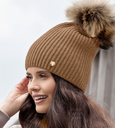 ( ilość produktów: 2840 )Elegancka czapka damska zimowa, wełniana z pomponem z jenota, Jenova, czarna, 55-59 cm