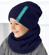 Czapka chłopięca, dzianinowa, dopasowana, TGraphic, granatowa, 49-53