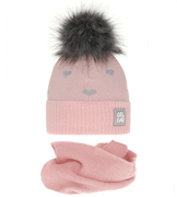 ( ilość produktów: 7104 )Zimowa czapka i komin dla dziewczynki, Sajmin, róż pudrowy, 46-48 cm
