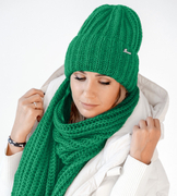 Czapka i szalik damski, modny komplet zimowy, Limda, soczysty zielony, 56-59 cm
