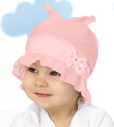 Kapelusz/czapka dla dziewczynki, muślin na lato, Delia, różowy, 50-52 cm