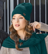 Komplet damski, zimowa czapka i szal, Kerita, zielony butelkowy, 55-57 cm