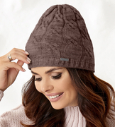 Brązowa czapka damska, w warkoczowy wzór, zimowa, Tarina, rozm. 55-57 cm