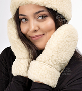 Rękawiczki damskie zimowe, jednopalczaste, wełna merino, kremowe, S/M